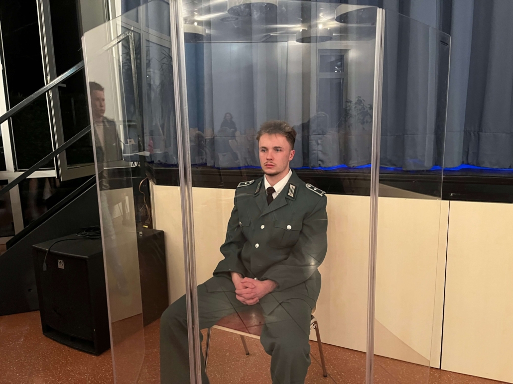 Das Publikum wurde dabei in die Rolle der Schöffen versetzt und musste am Ende der von beeindruckenden schauspielerischen Leistungen und Emotionen geprägten Aufführung sein Urteil fällen. Nachdem in der Gerichtsverhandlung durch umfangreiche Zeugenbefragungen und Plädoyers der Fall aus verschiedenen Perspektiven beleuchtet worden war, stimmten vier Fünftel der Schöffen für den Freispruch des Kampfpiloten.